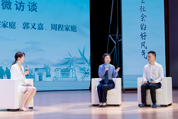 “十三届全国五好家庭”伍兰清、湘潭市优秀孝亲家庭廖永红及湖南省“最美家庭”赵赣龙分别分享了家风家教故事。图片来源:湘潭市妇联