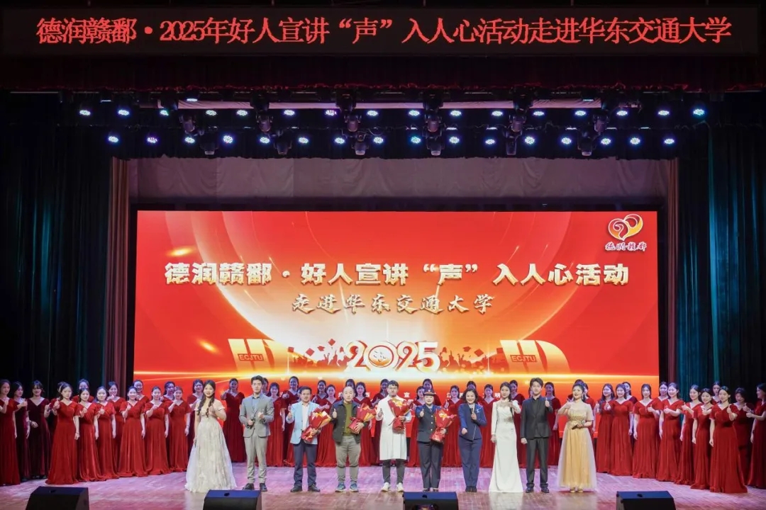 春色正中分,善行恰当时;听好人故事,学习榜样力量。近日,由中共江西省委宣传部、江西省文明办主办的首场“德润赣鄱·2025年好人宣讲‘声’入人心”活动来到了华东交通大学。活动现场,“中国好人”邹小炎和王顺、全国岗位学雷锋标兵舒曼、“江西好人”李军,依次登台,分享他们的感人事迹,用真挚的情感和质朴的语言,打动了来到现场的千余位师生。