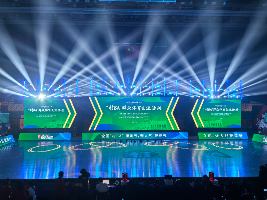 比赛间隙举办了“乡韵欢腾·全国和美乡村文艺展演”。一系列植根乡土、传递乡情的精彩节目轮番上演,空竹表演《秦风竹韵》灵动飘逸,民俗演出《桐子花开春风俏》韵味悠长,陕西非遗表演《安塞腰鼓》擂响了黄土地上的豪迈气魄,农民兄弟乐队激情唱响“村字号”赛事主题曲《乡村力量》,花式扣篮与全民欢歌等互动环节燃动全场,将现场气氛一次次推向高潮。赛场外,全国和美乡村篮球大赛(村BA)文化风采展,通过208张照片和65件实物,生动展示了“村BA”的发展历程与取得的丰硕成果。