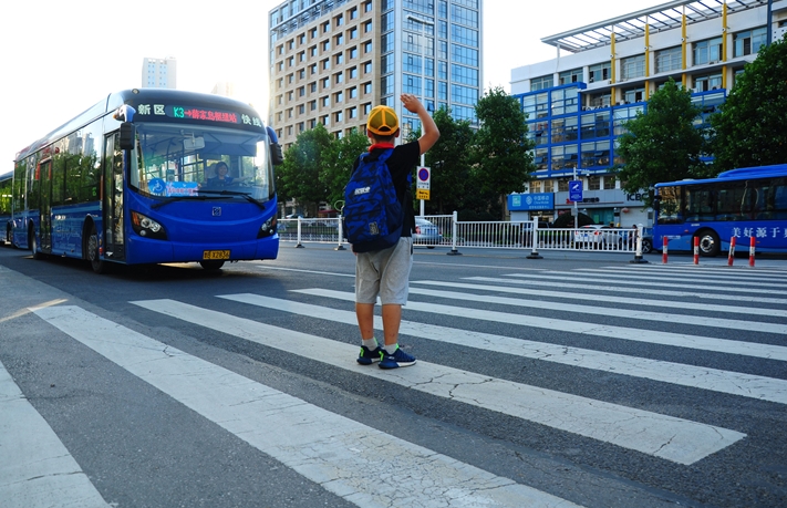 青岛真情巴士发起礼让斑马线活动。