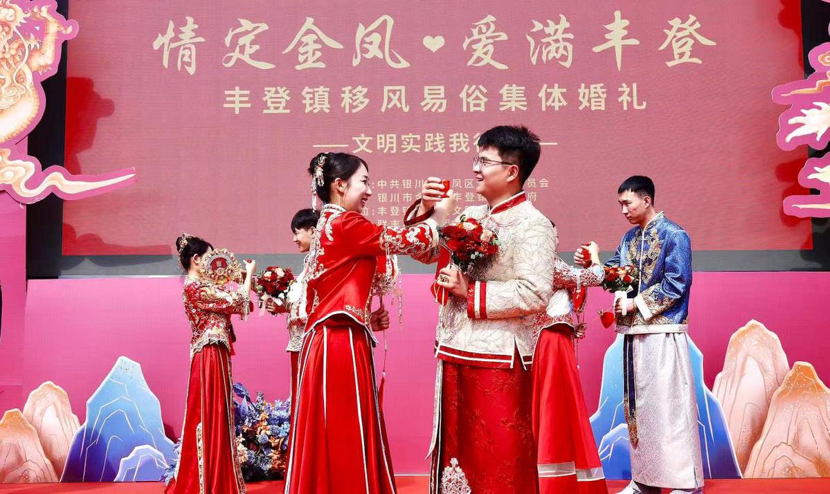 宁夏银川市金凤区举办移风易俗集体婚礼。图片来源:宁夏银川市金凤区委宣传部