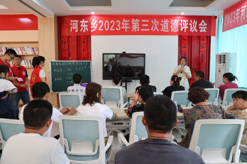 在德安县河东乡新时达文明实践中心,一场“最美婆婆,最美丈母娘”评选活动正在进行,工作人员通过计票的形式完成“五个100”系列群众推荐评议活动,志愿者进行现场监督。