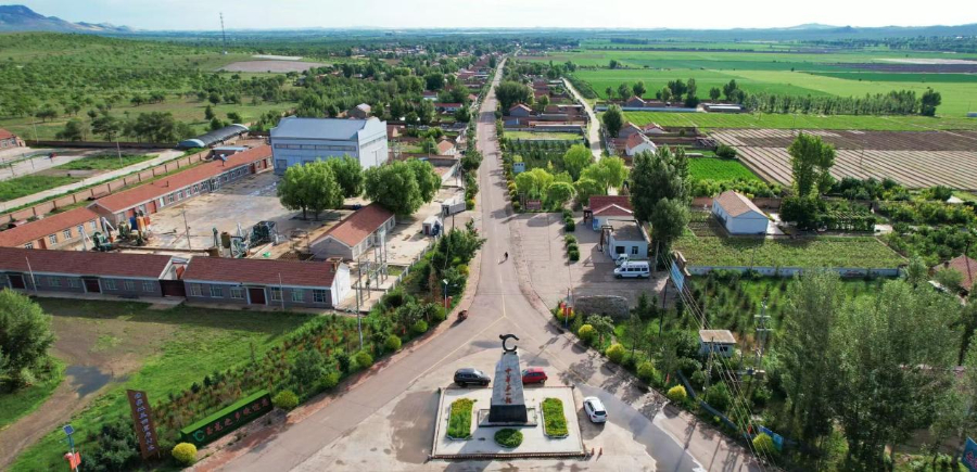 赤峰市翁牛特旗赛沁塔拉嘎查村口。新华网发(赤峰市翁牛特旗科学技术学会工作人员 苏德斯琴 摄)