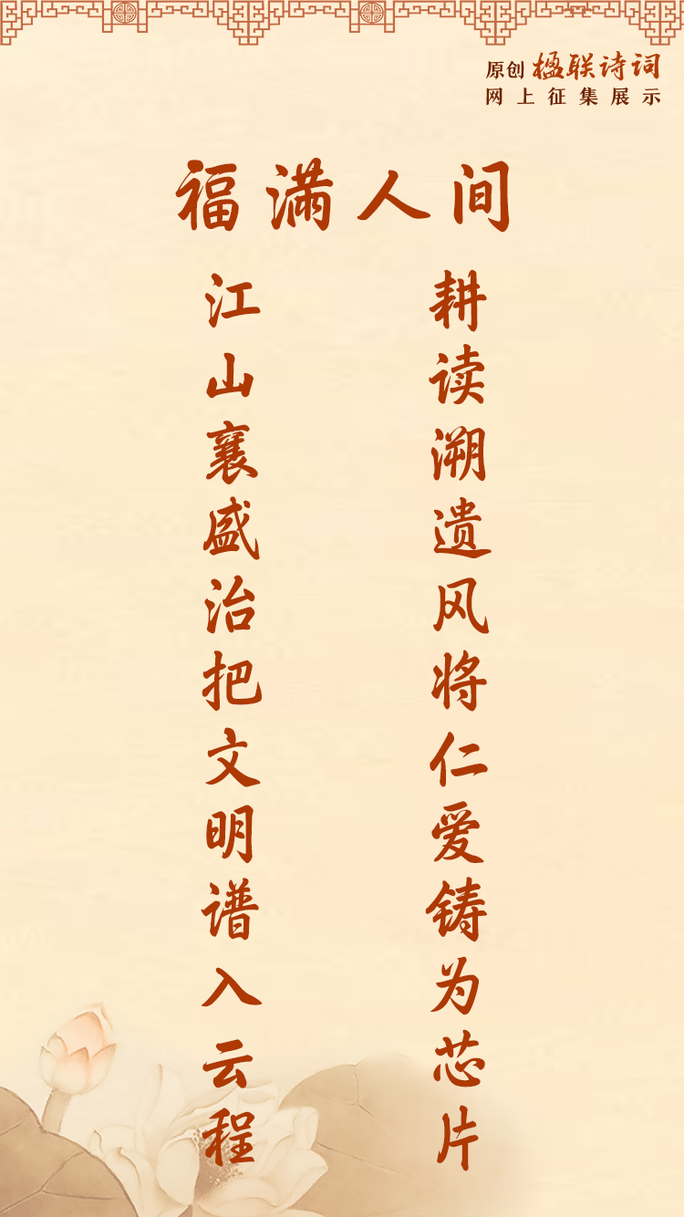 耕读溯遗风将仁爱铸为芯片 江山襄盛治把文明谱入云程 | 楹联