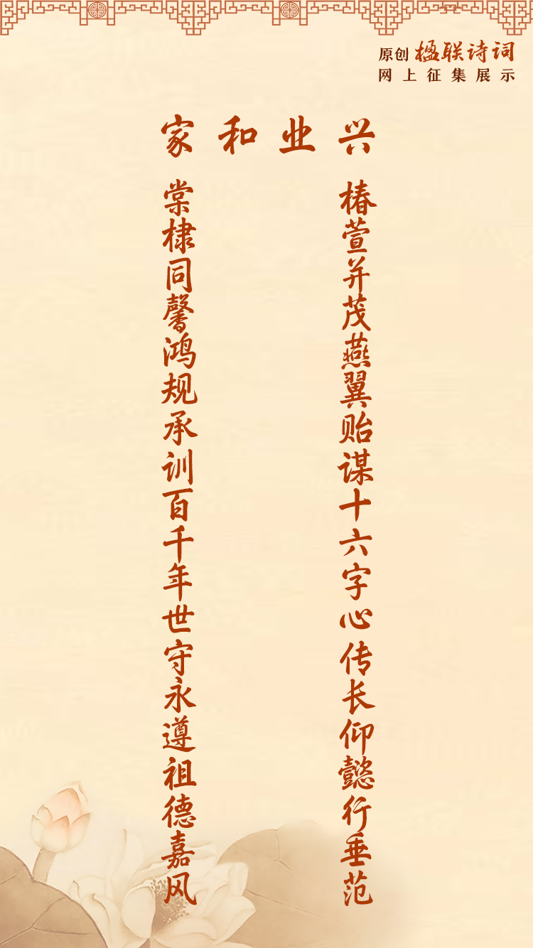 椿萱并茂燕翼贻谋十六字心传长仰懿行垂范 棠棣同馨鸿规承训百千年世守永遵祖德嘉风 | 楹联-中国文明网